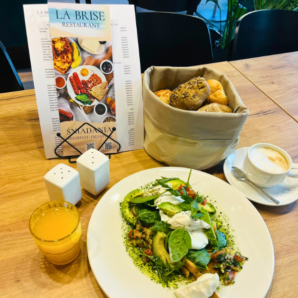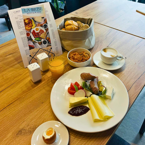Rozpocznij dzień wyjątkowo – w La Brise, gdzie czeka na Ciebie kolorowy poranny bufet oraz świeżo przygotowane zestawy śniadaniowe inspirowane europejskimi smakami z lokalnym akcentem. To właśnie nasze śniadania w Międzyzdrojach przyciągają smakoszy szukających różnorodności, jakości i swobody wyboru. W menu znajdziesz chrupiące pieczywo, świeże warzywa i owoce, regionalne produkty mleczne, ryby prosto z Bałtyku, a także smaczne opcje wegetariańskie i wegańskie.